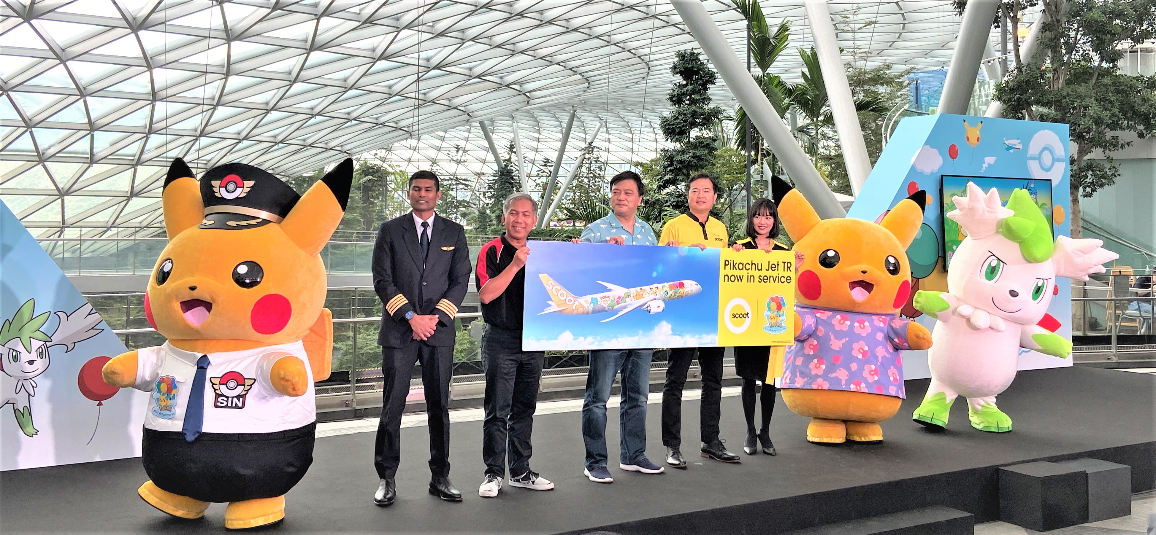「皮卡丘彩繪機 TR」的機身設計在8月30日於新加坡樟宜機場舉行的記者會上揭曉。這架波音787-9夢幻客機(375 個座位),機身上繪有專門為其所設計的寶可夢們的圖案。